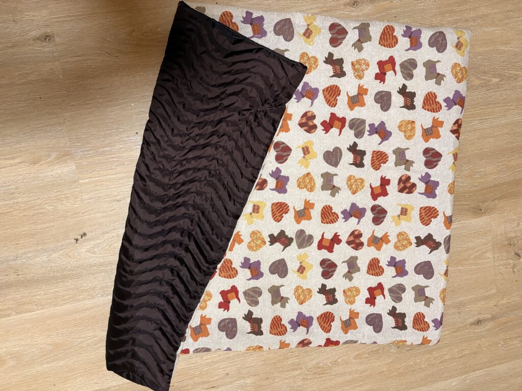 Wir fertigen immer wieder unterschiedliche Größen. Standard ist 50×70 cm. Die Motive und Farben variieren je nach Stoffverfügbarkeit. Übergröße kann gerne bestellt werden, hier verrechnen wir einen kleinen Aufschlag je nach Größe.