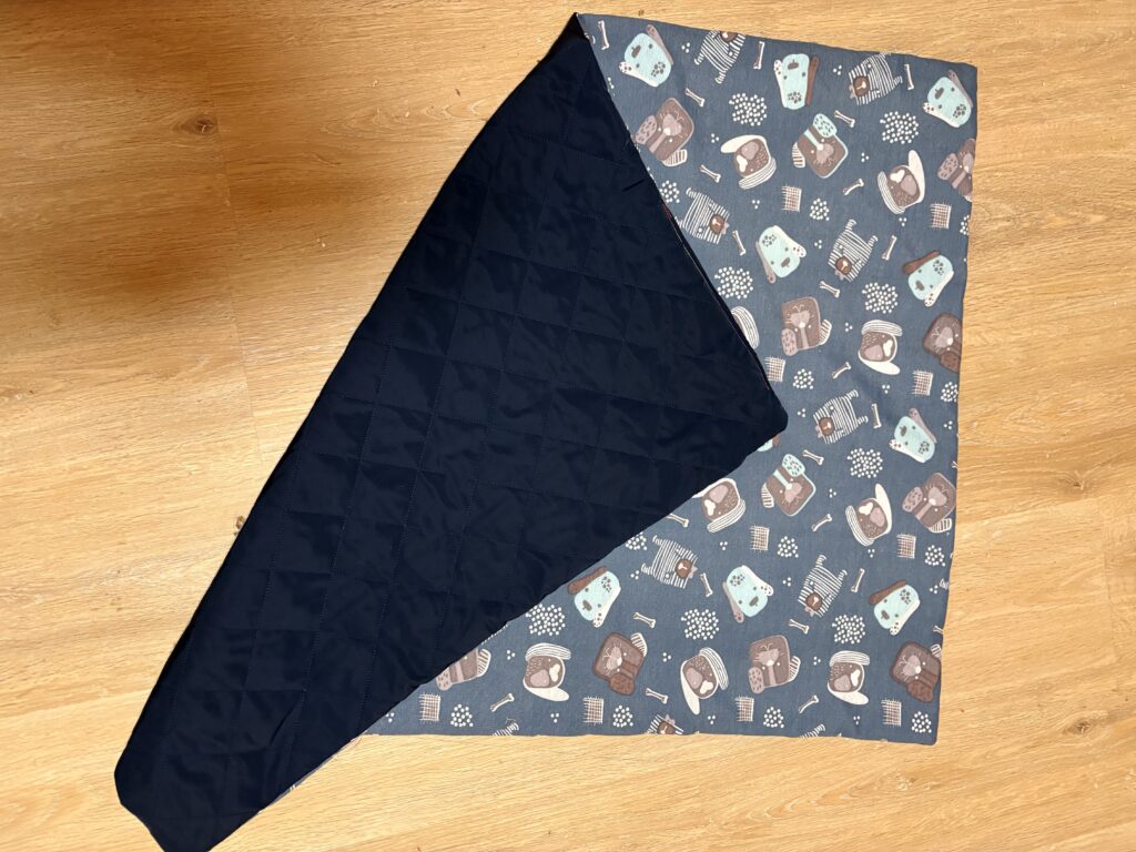 Die Liegedecken werden in liebevoller Handarbeit von uns genäht. Eine Seite besteht aus einem leicht wattierten Jackenstoff, der sogar wasserabweisend ist. Die Liegeseite besteht aus strapazierfähigem, dickeren Baumwollstoff. Die Decken können in der Waschmaschine bei 30 Grad gewaschen werden. Durch ihr geringes Gewicht und das kompakte Format können sie leicht mitgenommen werden.
