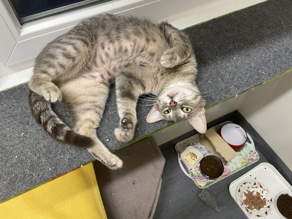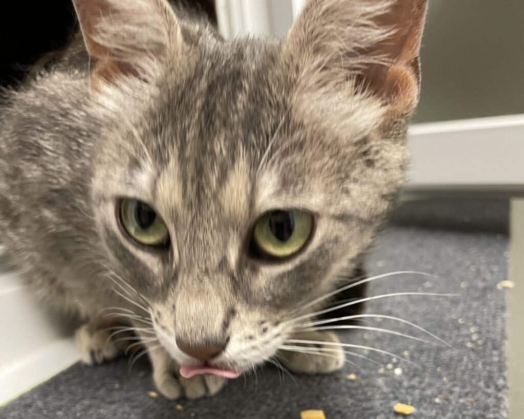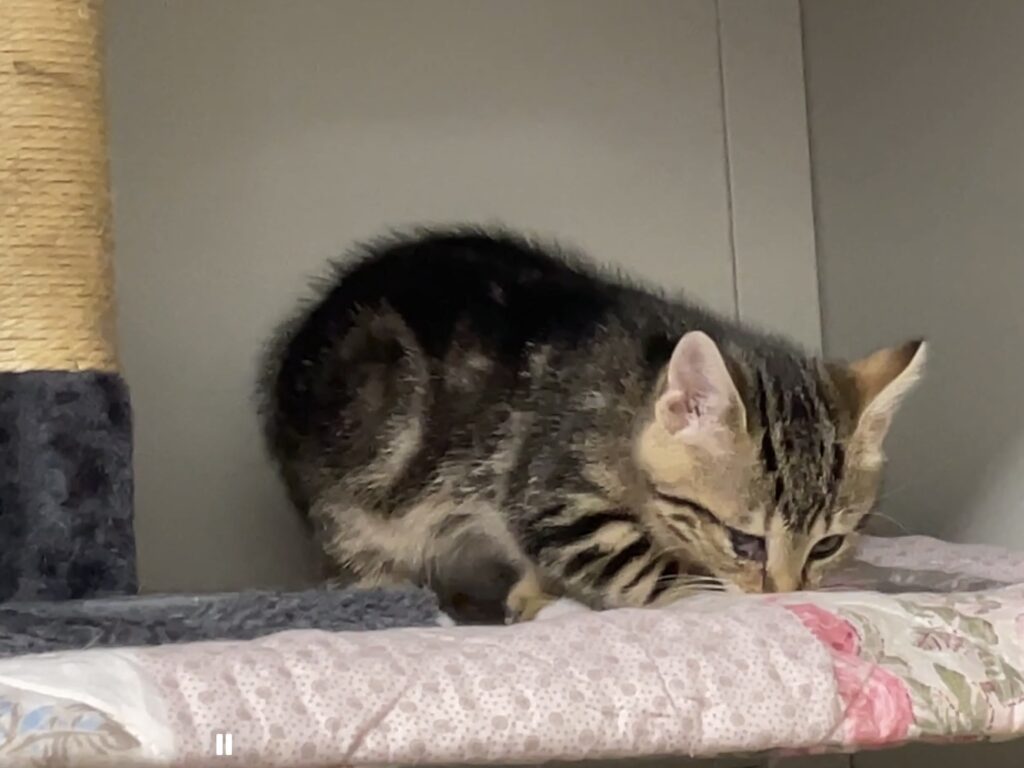 Das kleine graue Mädel ist eine ganz grosse Kämpferin, ihr hat der Schnupfen am meisten zugesetzt, sie konnte nicht fressen und Zufüttern ging auch nicht weil sie nicht genug Luft bekam, am 1.6. haben wir dann beschlossen dass wir noch versuchen ihr eine Magensonde zu setzen, auch wenn es sehr unwahrscheinlich war dass sie die OP überlebt, aber die Alternative wär nur gewesen sie einschlafen zu lassen. Wir konnten sie ja nicht einfach verhungern lassen.