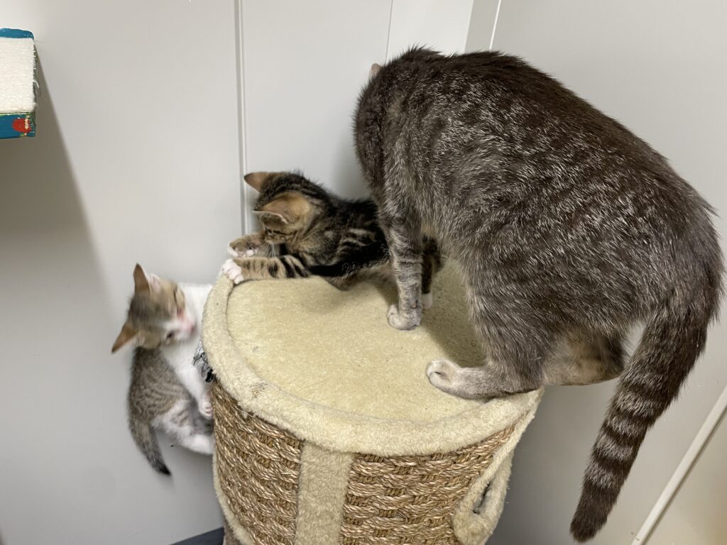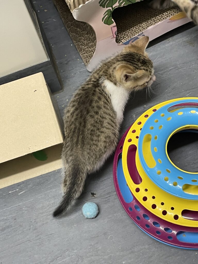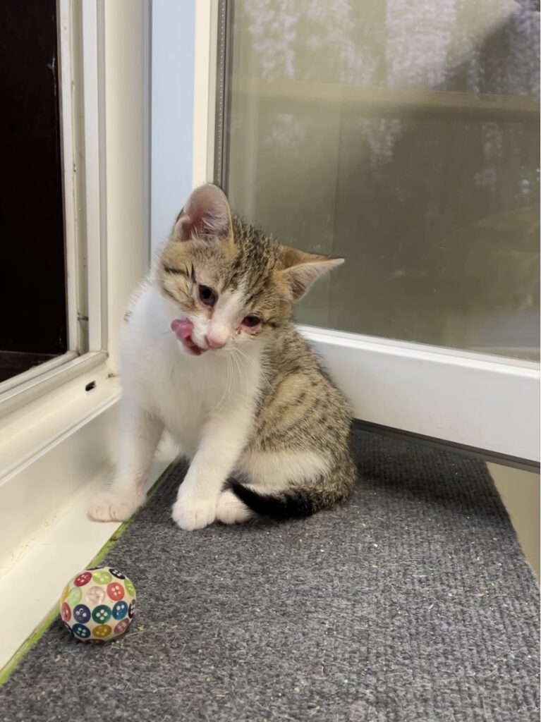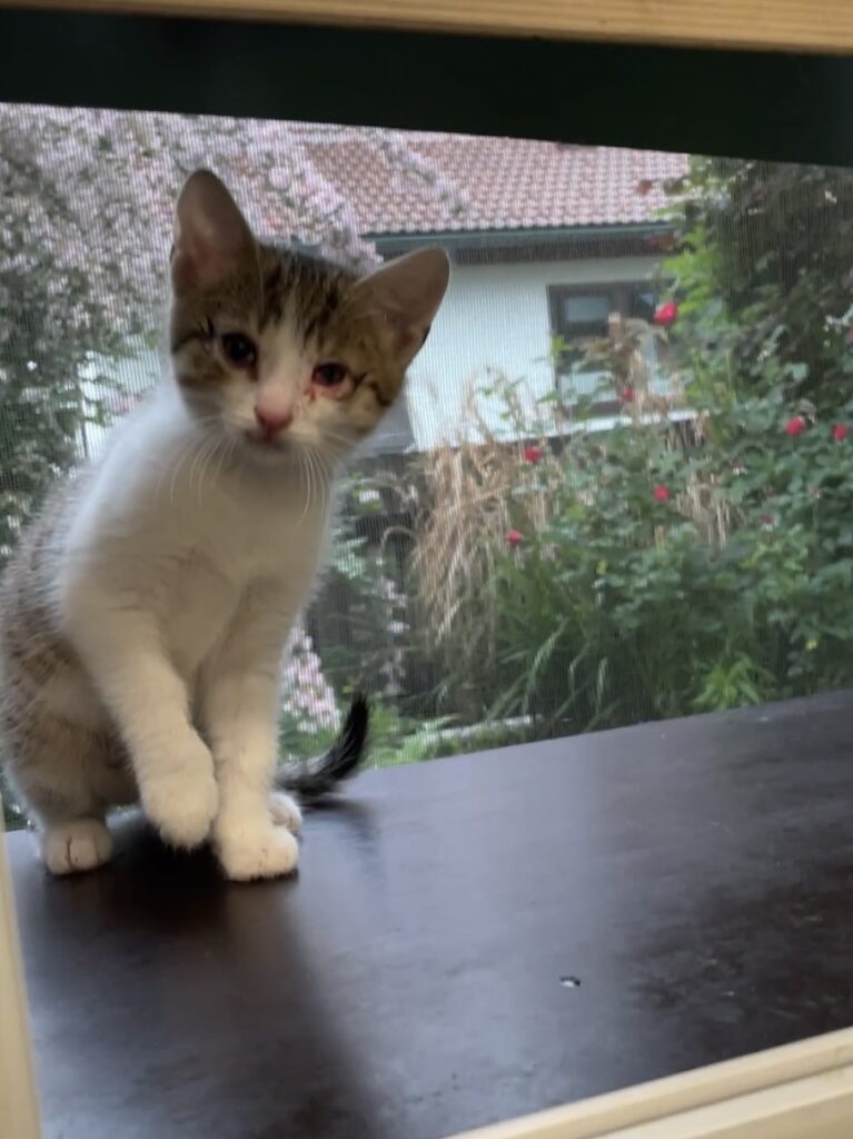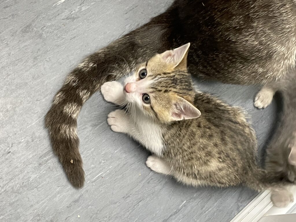 Die beiden überlebenden Brüder sind inzwischen schon doppelt so schwer wie das Mädi und putzmunter. Gottseidank schlägt das neue – sauteure – Spezialmedikament jetzt an und das Auge des tigerweissen Buben wird endlich bissi besser .