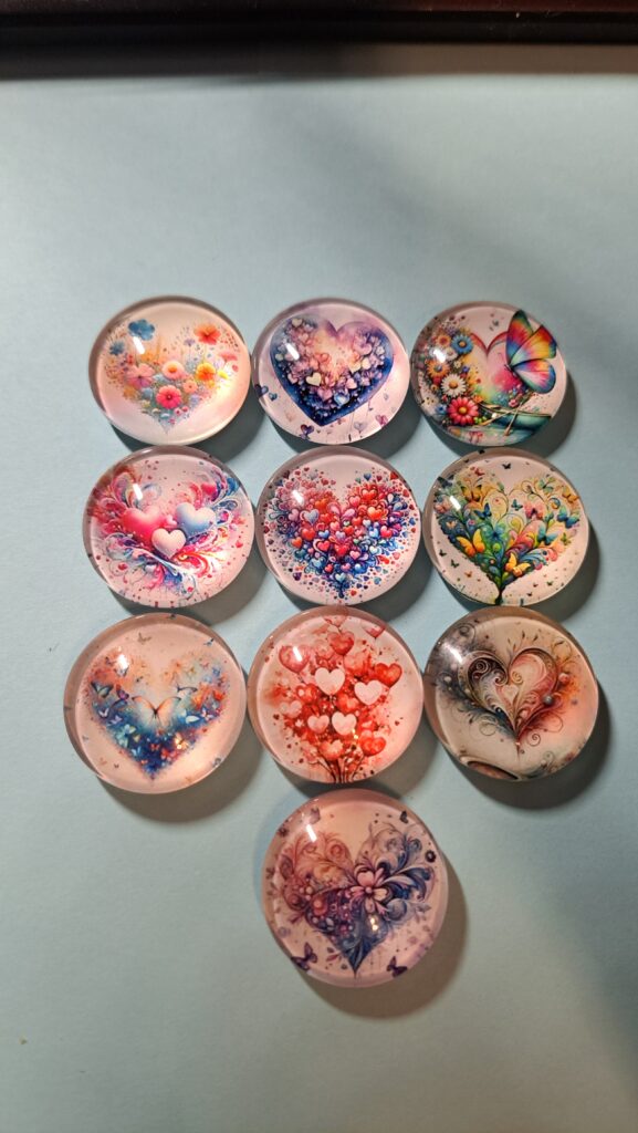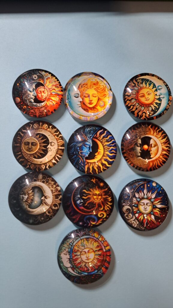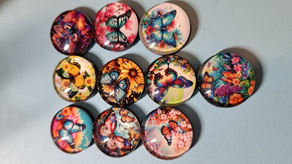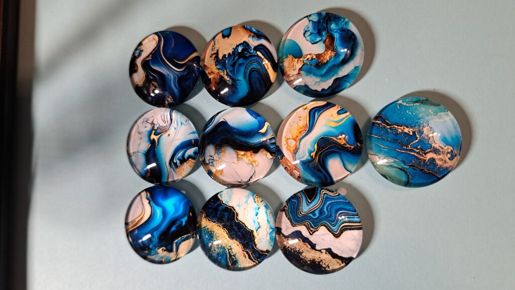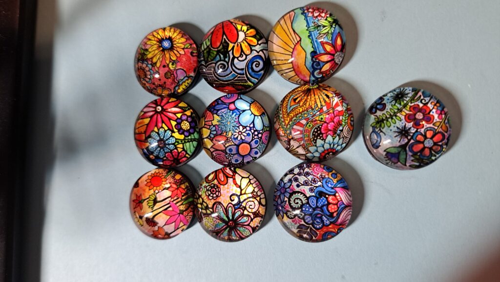 Die Magnete werden von uns in liebevoller Handarbeit gefertigt. Die Auswahl der Glassteine erfolgt sorgfältig. Die Magnete haben eine Größe von 20 bzw. 25mm.