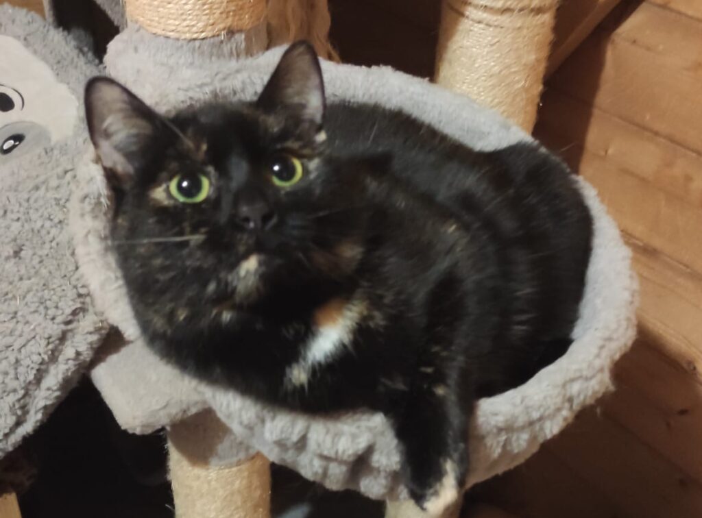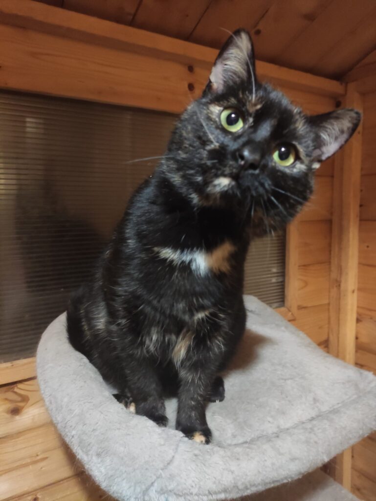 Fiesta ist sehr zugänglich und wenn sie aufgetaut ist auch verschmust. Zu Beginn und bei fremden Menschen ist sie zunächst misstrauisch und zurückhaltend. Sie mag es auch nicht wenn sie von anderen Katzen bedrängt wird. Die junge Schildpattdame wird nicht in Einzelhaltung vermittelt. Ein Partner im gleichen Alter ist Voraussetzung, gerne machen wir auch Vorschläge aus unserem Rudel.